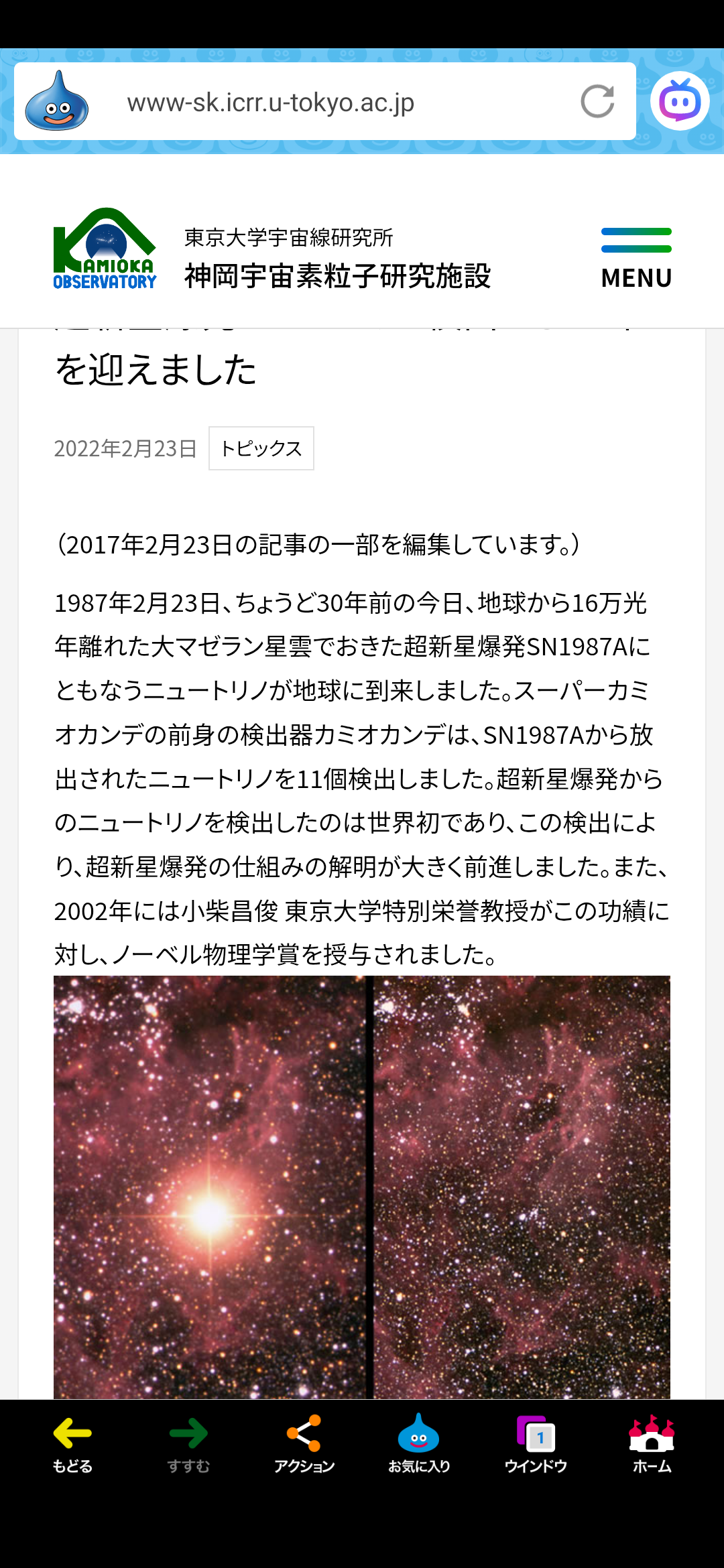 「カミオカンデでマゼラン星雲で起きた超新星爆発によるニュートリノを世界で初めて観察した日」、「甲府UFO事件の日」。🎌
