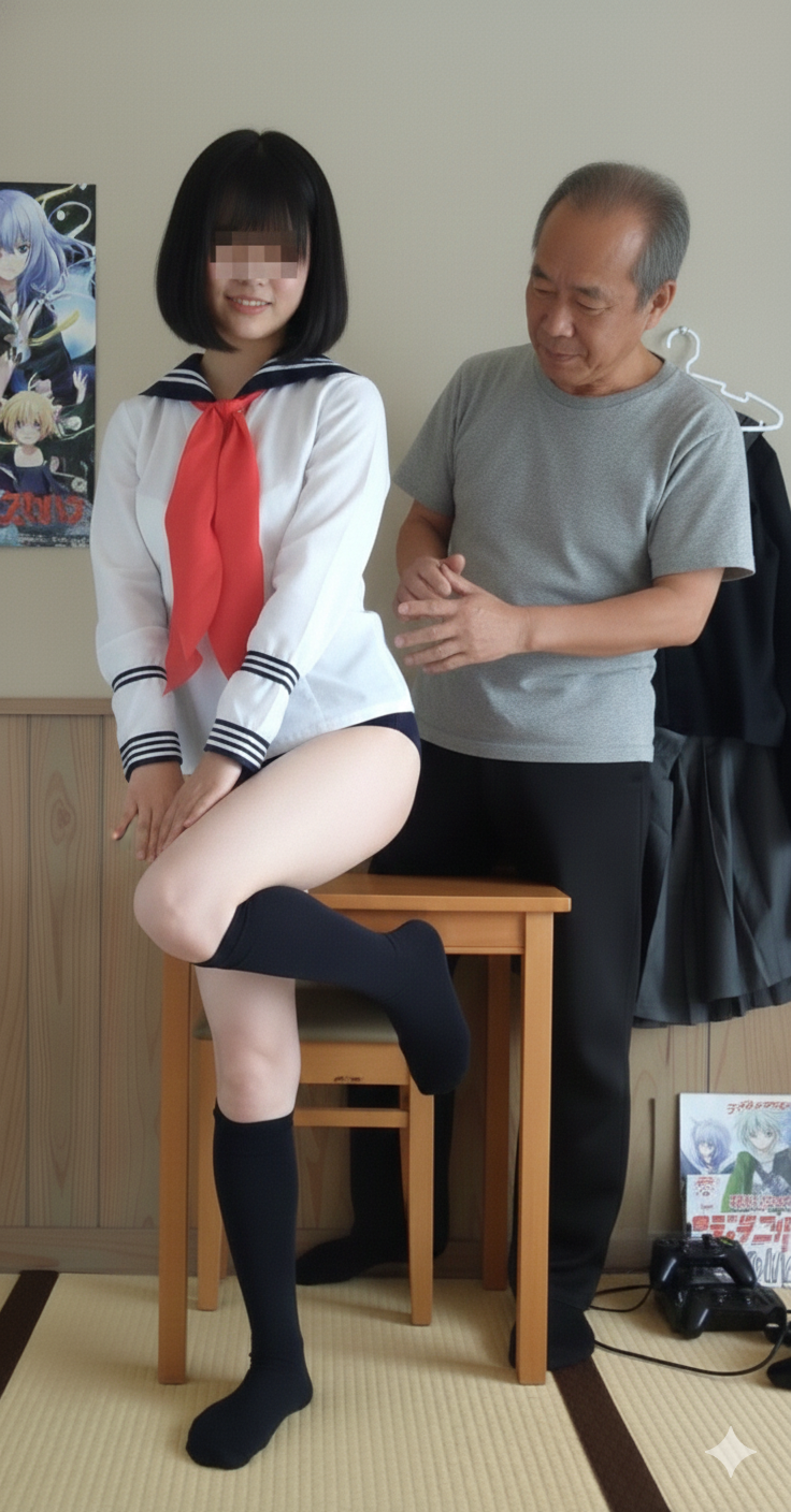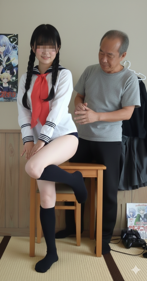 おじさん: 後ろも整えないとね、🤤