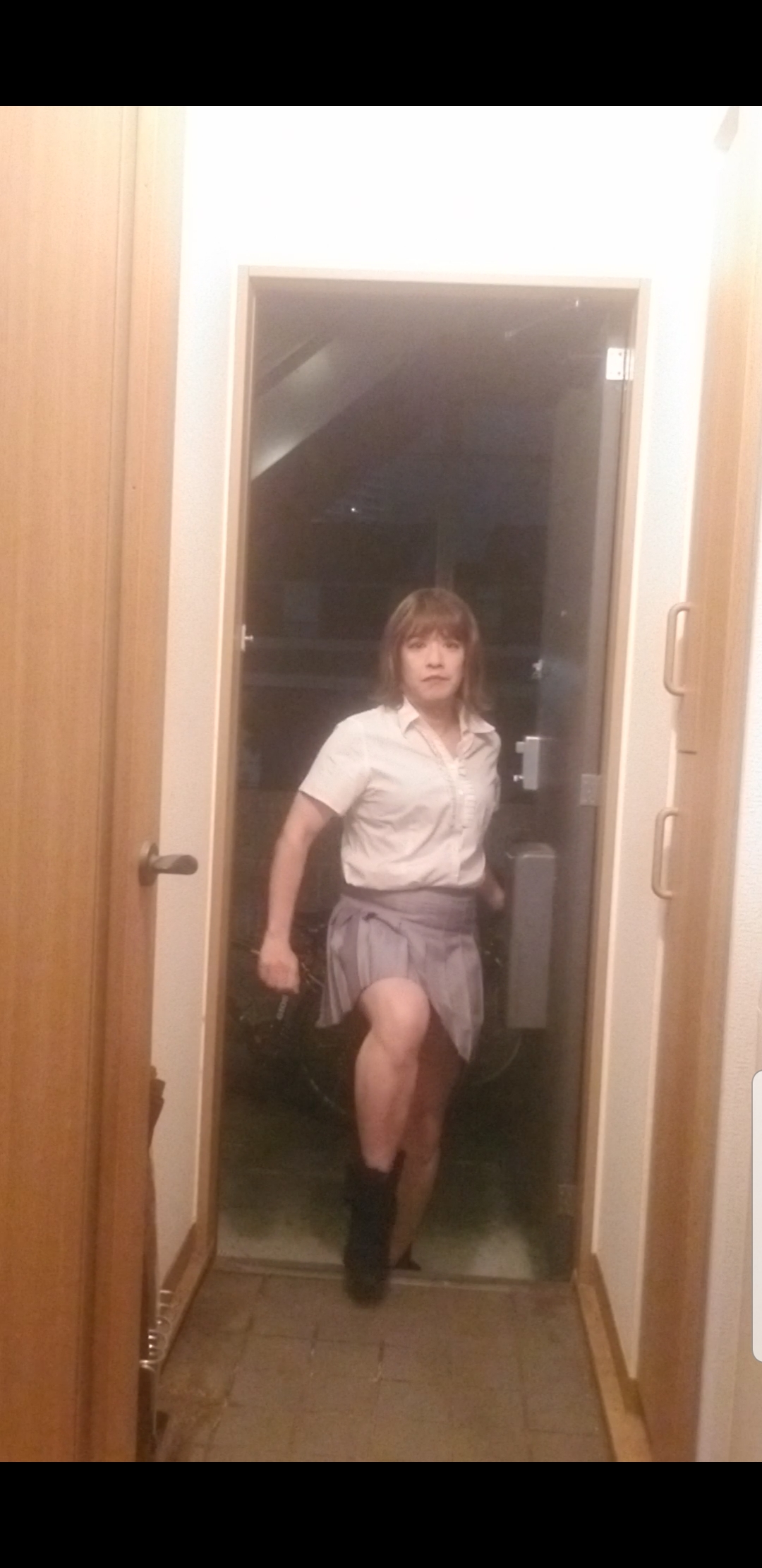 今夜の燃えるゴミ出し路上露出姿でーす。😘✌️