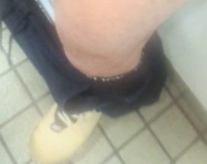 脱衣所では念のためズボンとショーツを一緒に脱ぐ