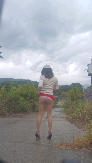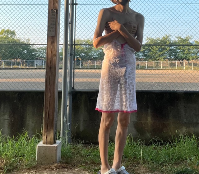 公園散歩で一般の人が多そうな時は、ミニスカをさらに短くして半分お尻出して歩いてます。
