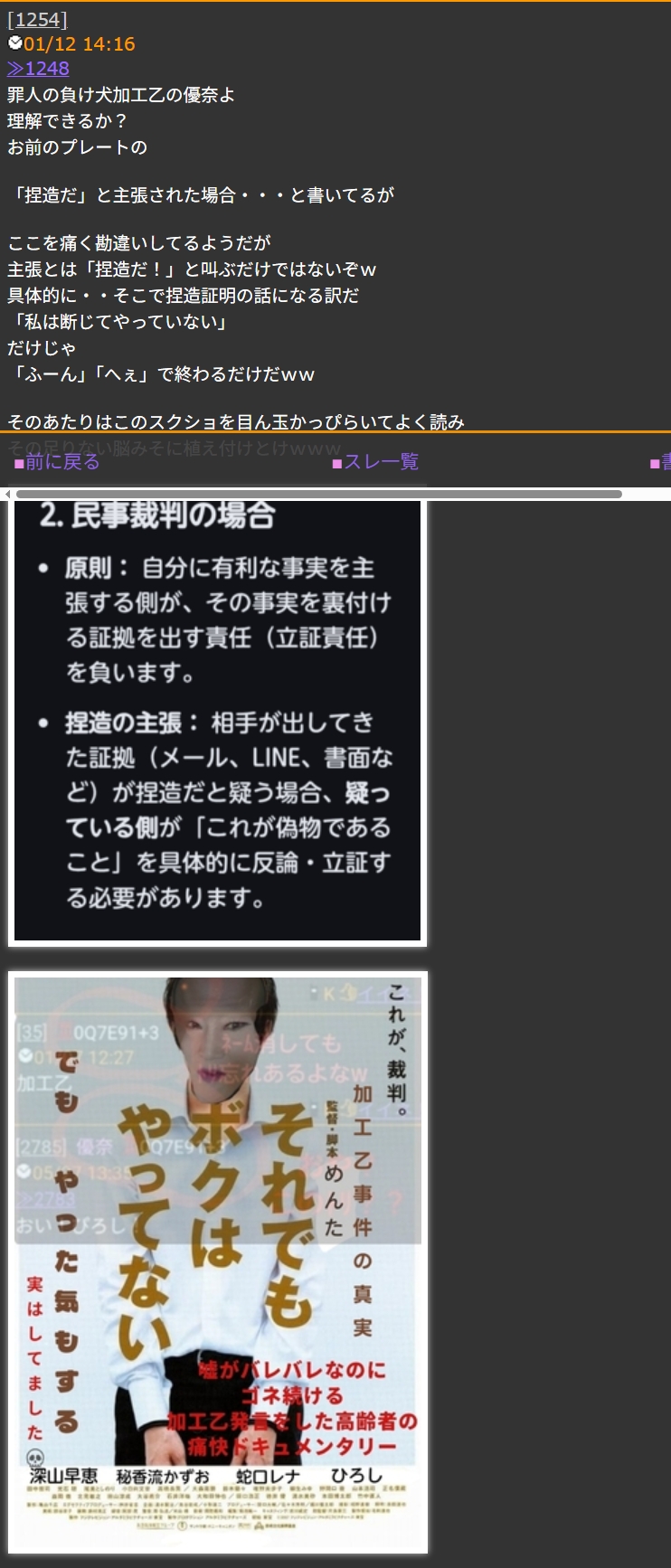 捏造だと指摘されたスクショは本物だと証明する必要が有ると【法】が定めてんだよ