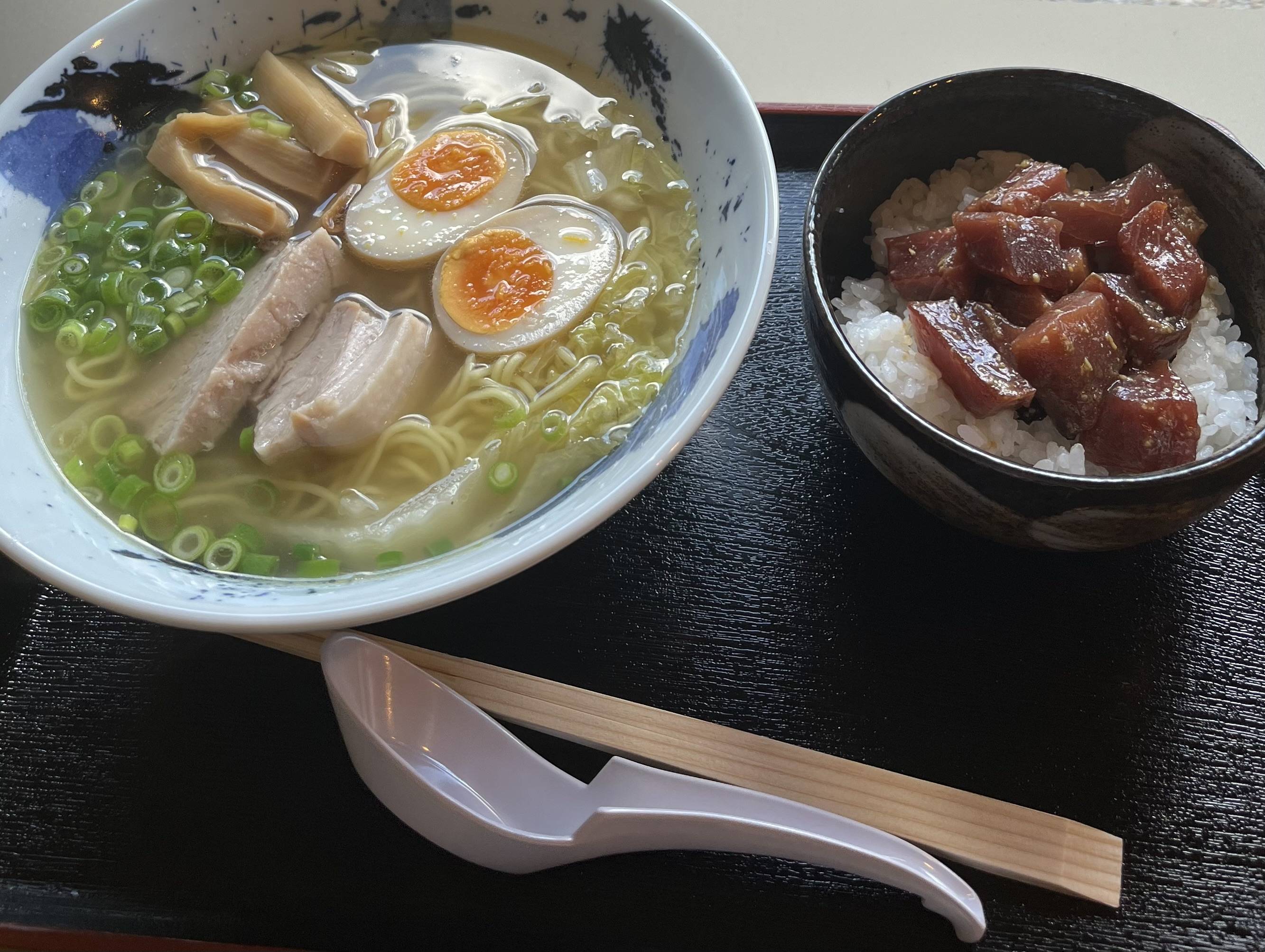 かんたさん、こんばんは😊昨日のお昼のランチは正直、近江牛🐃かどうか分かりません。でも美味しかったですヨ😋今日は枚方の白馬童子のラーメン🍜です。濃いスープで美味しいです😋麺大盛り おにぎり🍙二つで800円程です。コスパ抜群ですネ。