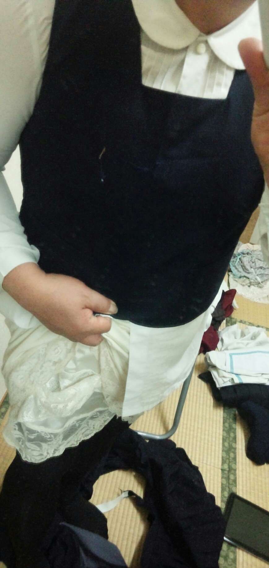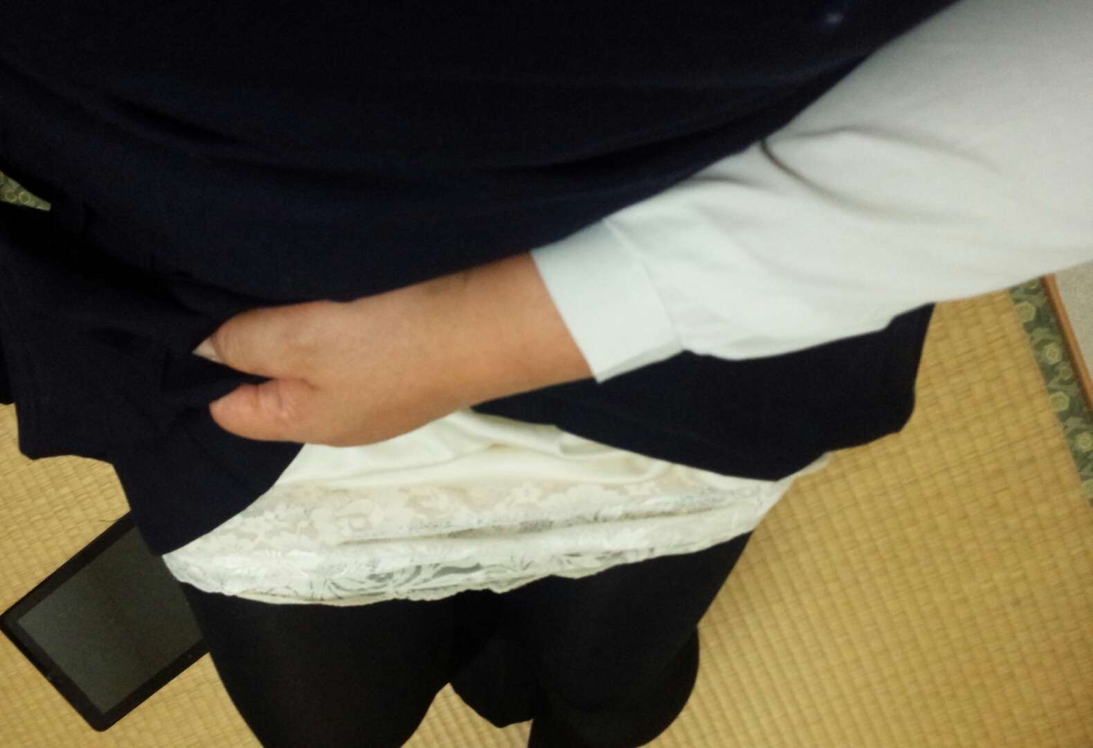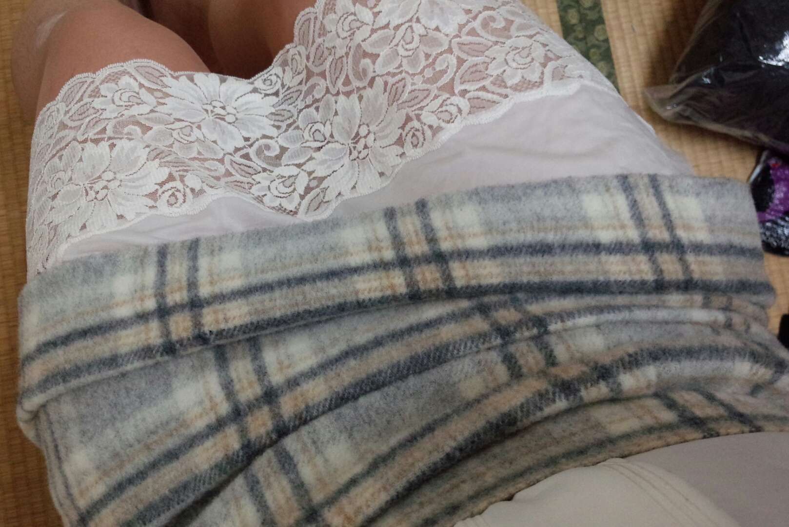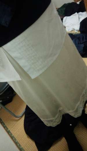 かんたさん、おはようございます。スリップの下にちゃんと穿いてますよ♡でも、寒いからタイツかな。