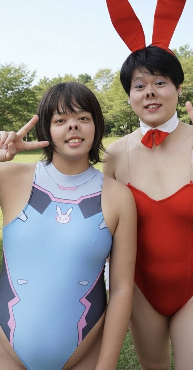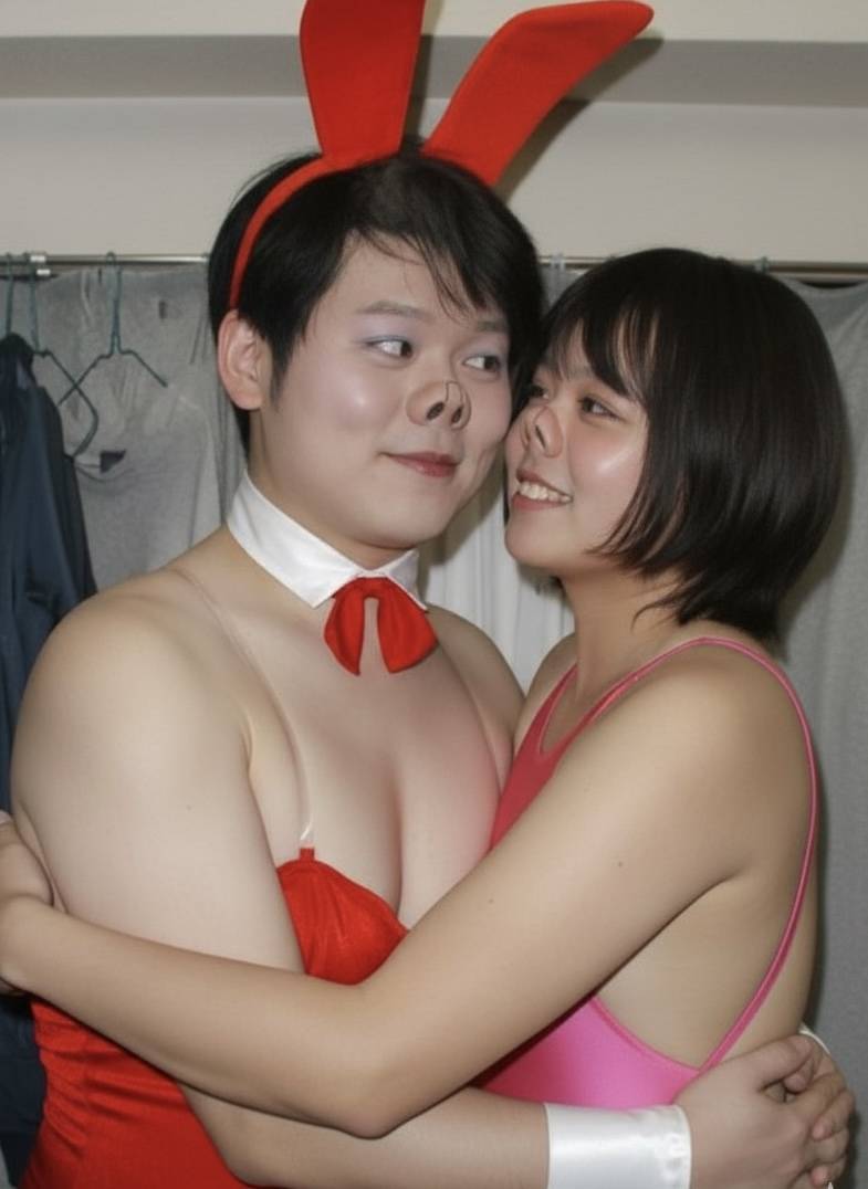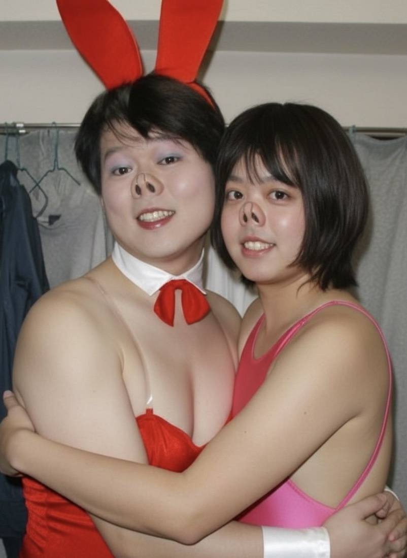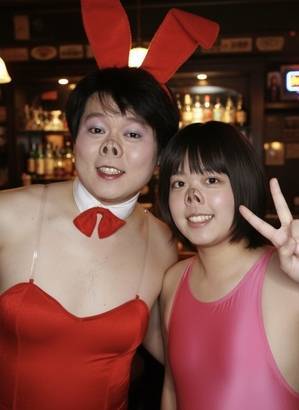初代豚っ鼻バニーさんと、私2代目の豚鼻バニーです。