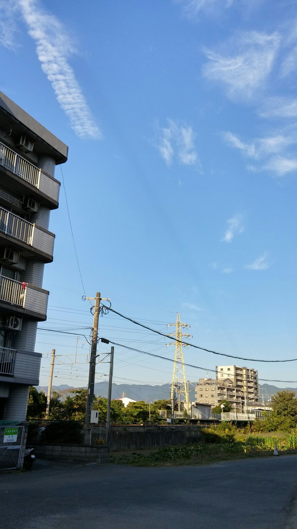 写真はこの前空に黒い線があったから撮ってみたの~ 最初もっと濃いかったんだけど、時間が経って薄くなってるけど…不思議だね😔