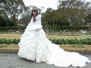 ウェディングドレスでお出かけすると、行った場所から移動できないので大変です(笑)。お腹が空いても、食事にも行けないのでいつも大変な思いをしています・・・。