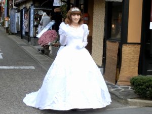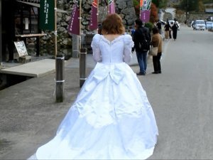 天気が良いと観光地もドレスで散策しています。