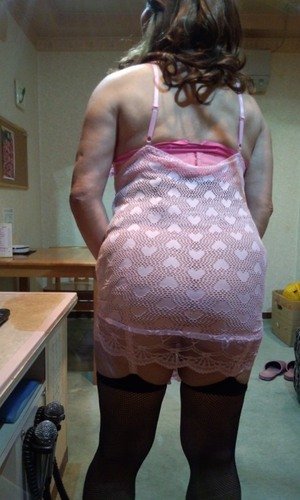 ピンク地のハート模様のレースのランジェリーです。