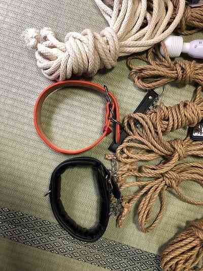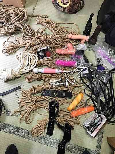 持参グッズは....麻縄、バイブ、ディルド、首輪、鞭、乳首吸引器....