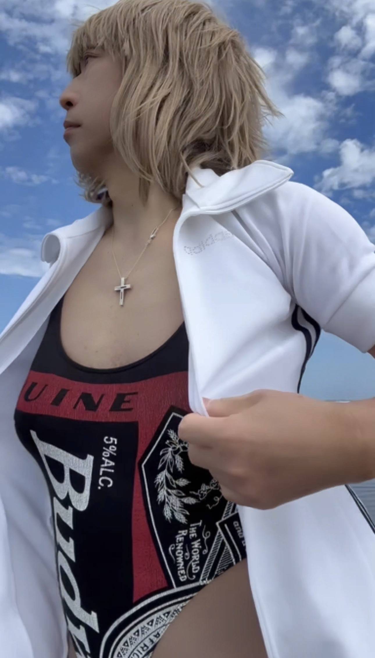 この白のトレーニングジムウェアがお気に入りなんですが…