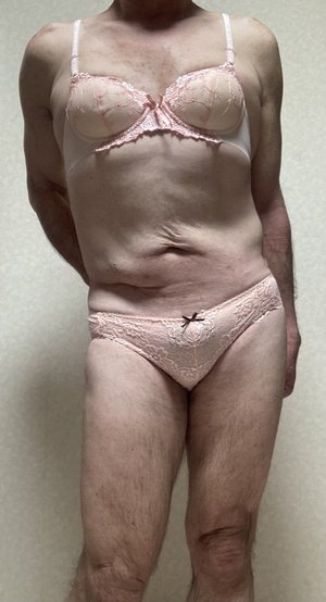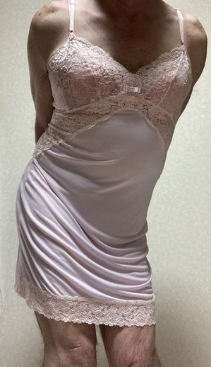 ピンクのスリップ、お胸の小さなリボンが可愛いし豪華なレースと胸下からサイドに流れるレースが素敵なの😘