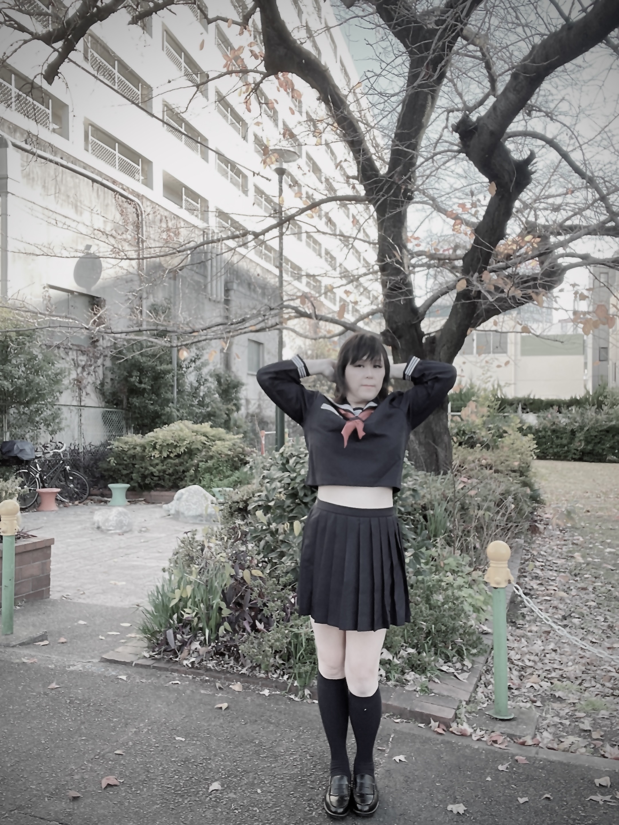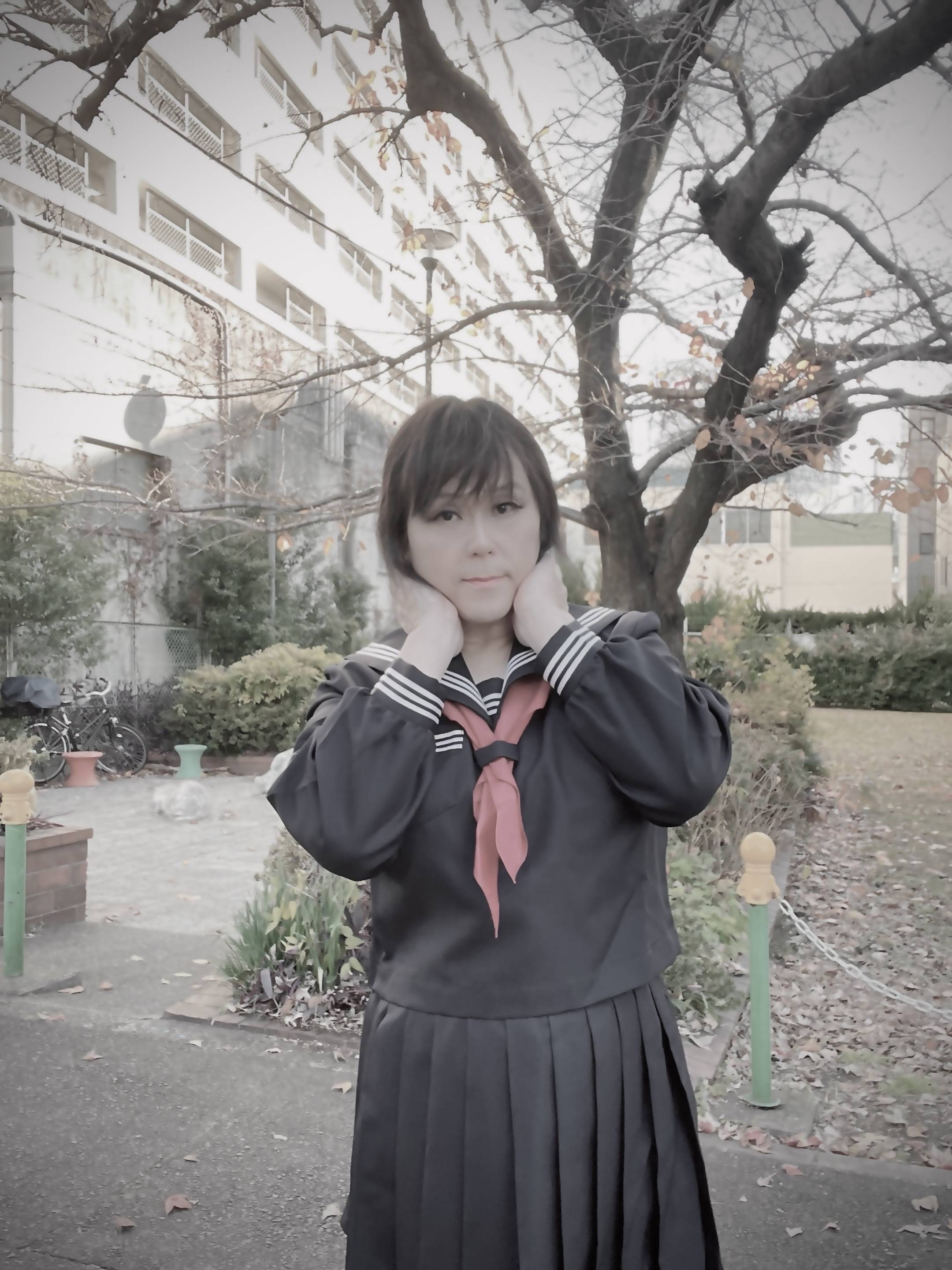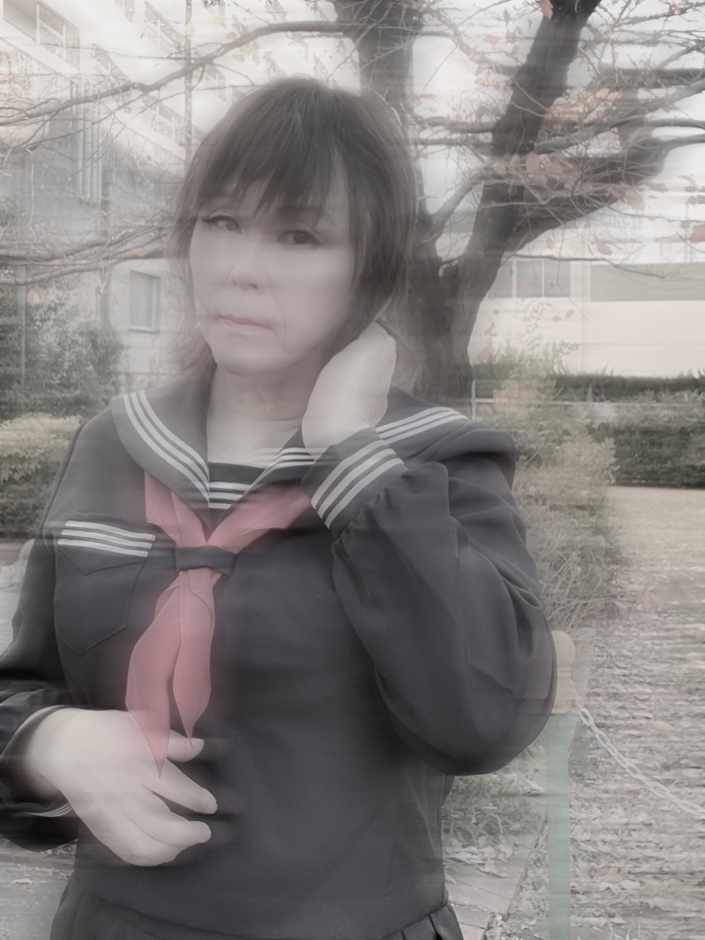セーラー服で大須から名駅まで散歩してしまうのもその現れですし、今日の写真のように自縛して恍惚に浸ったりしてしまいます。