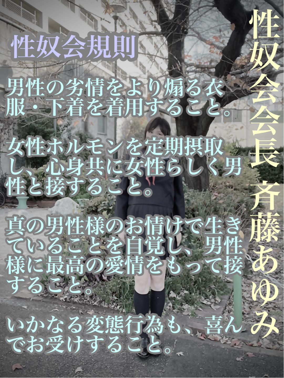 あゆみのような劣等sissyは、男性様のお慈悲とお情けで生かされているだけのゴミムシです。