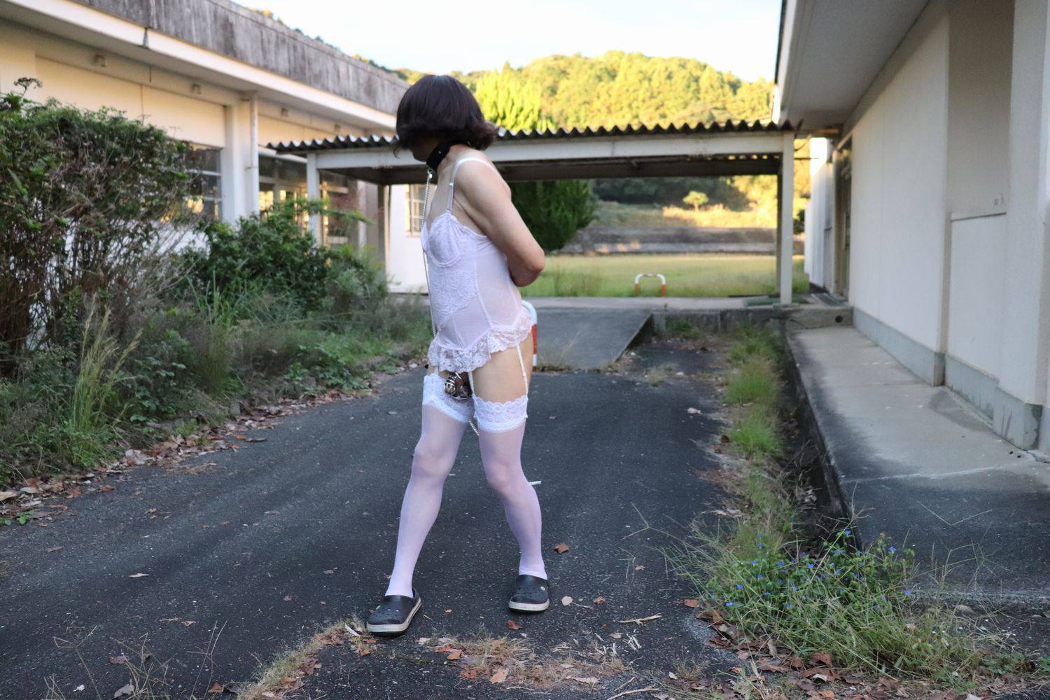 この日は廃校に連れてこられ、恥ずかしい格好での