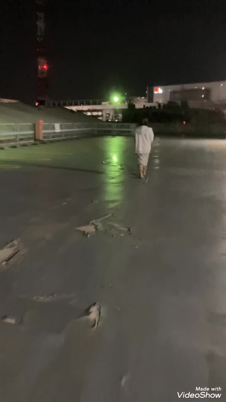 野外駐車場で歩く