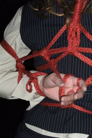 緊縛画像続きです。本格的な胡座縛りの始まりです。