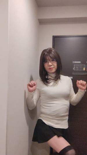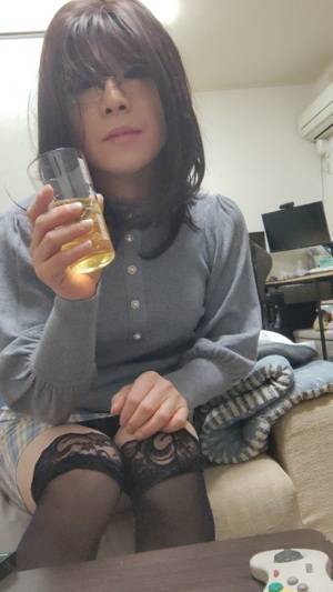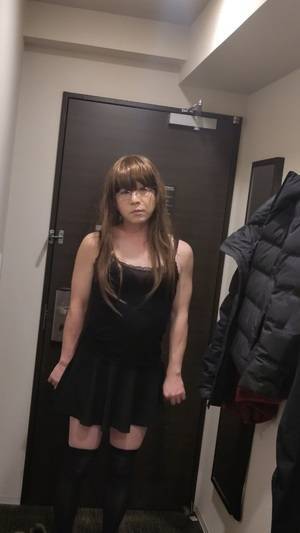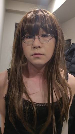 ひさびさフルメイクとヅラ ママの真似して 黒下着