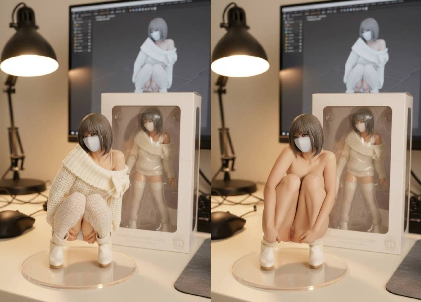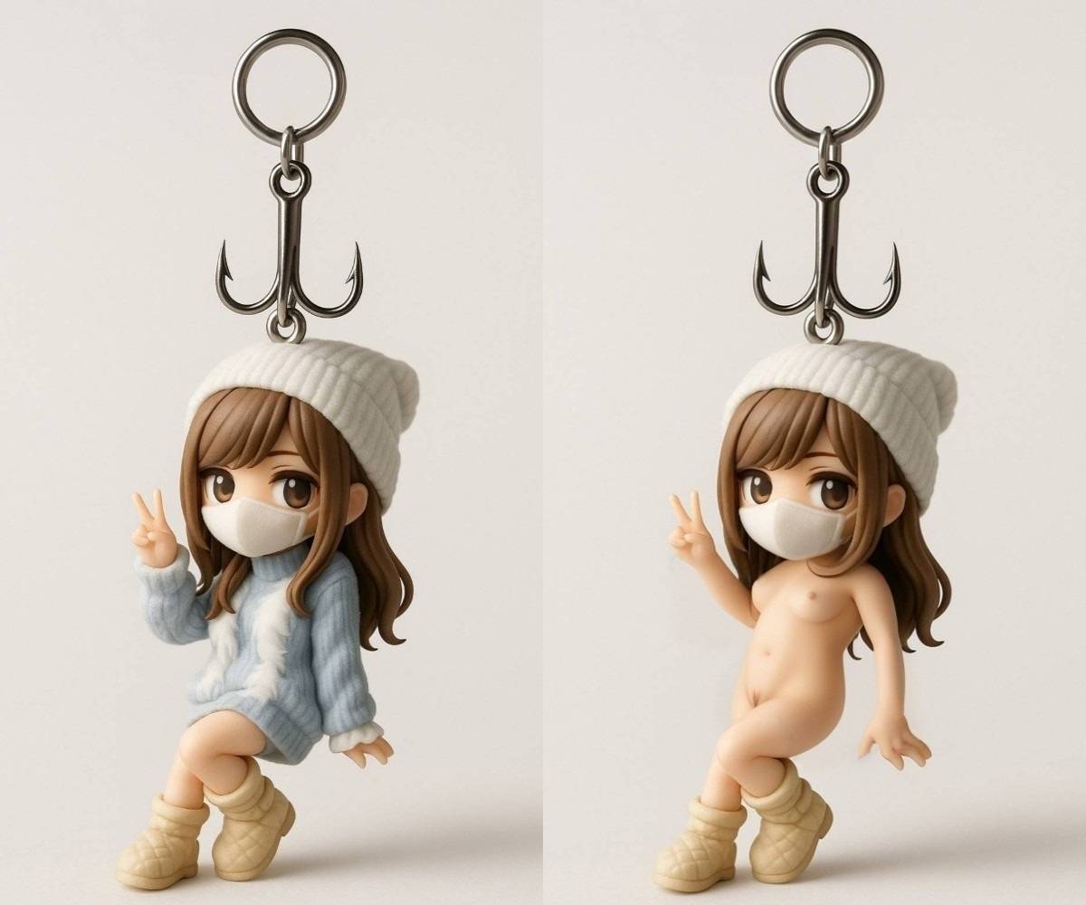 「フィギュアのブラジャーとマスクを外して