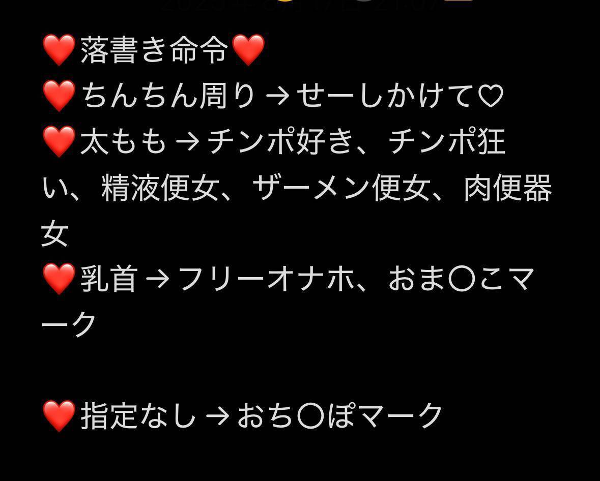 今度女装して落書きできそうなので、書かせたいワードがあれば、場所と一緒に書いてくれると嬉しいです♡