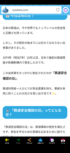 「安心・安全なまちづくりの日」、「鉄道安全確認の日」、「上野アメ横が始まったとされる日」。🎌