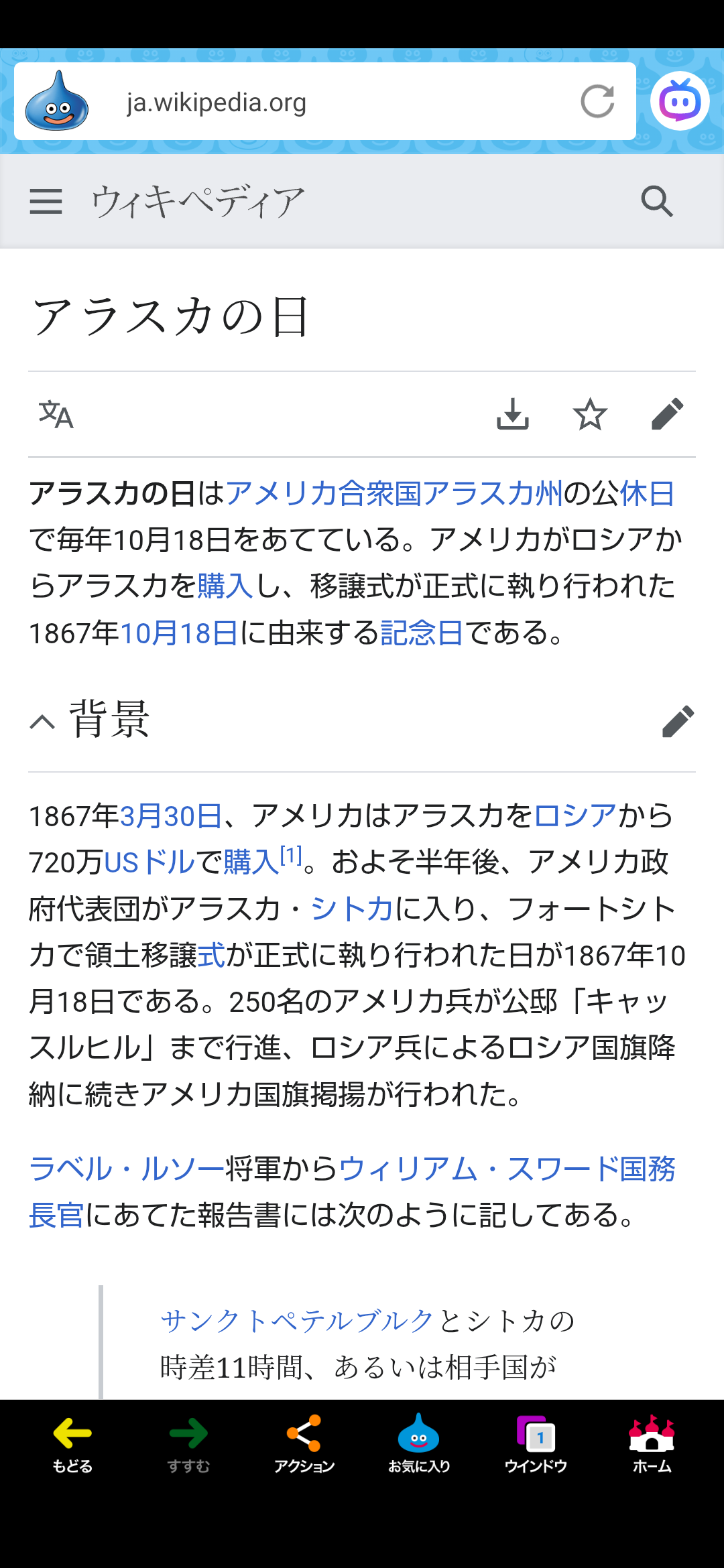 「統計の日」、「冷凍食品の日」、「アラスカがロシアからアメリカに720万ドルで譲渡された日」。🎌