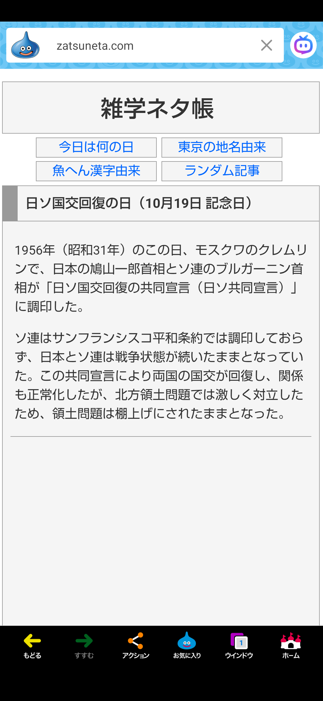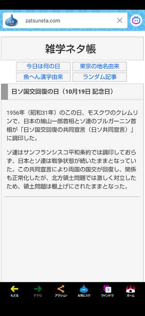 「日ソ国交回復の日」、「ブラックマンデー」、「2017年(平成29年)天体観測史上初となる太陽系外からの飛来物とされる恒星間天体オウムアムアをハワイのパンスターズが観測した日」。🎌