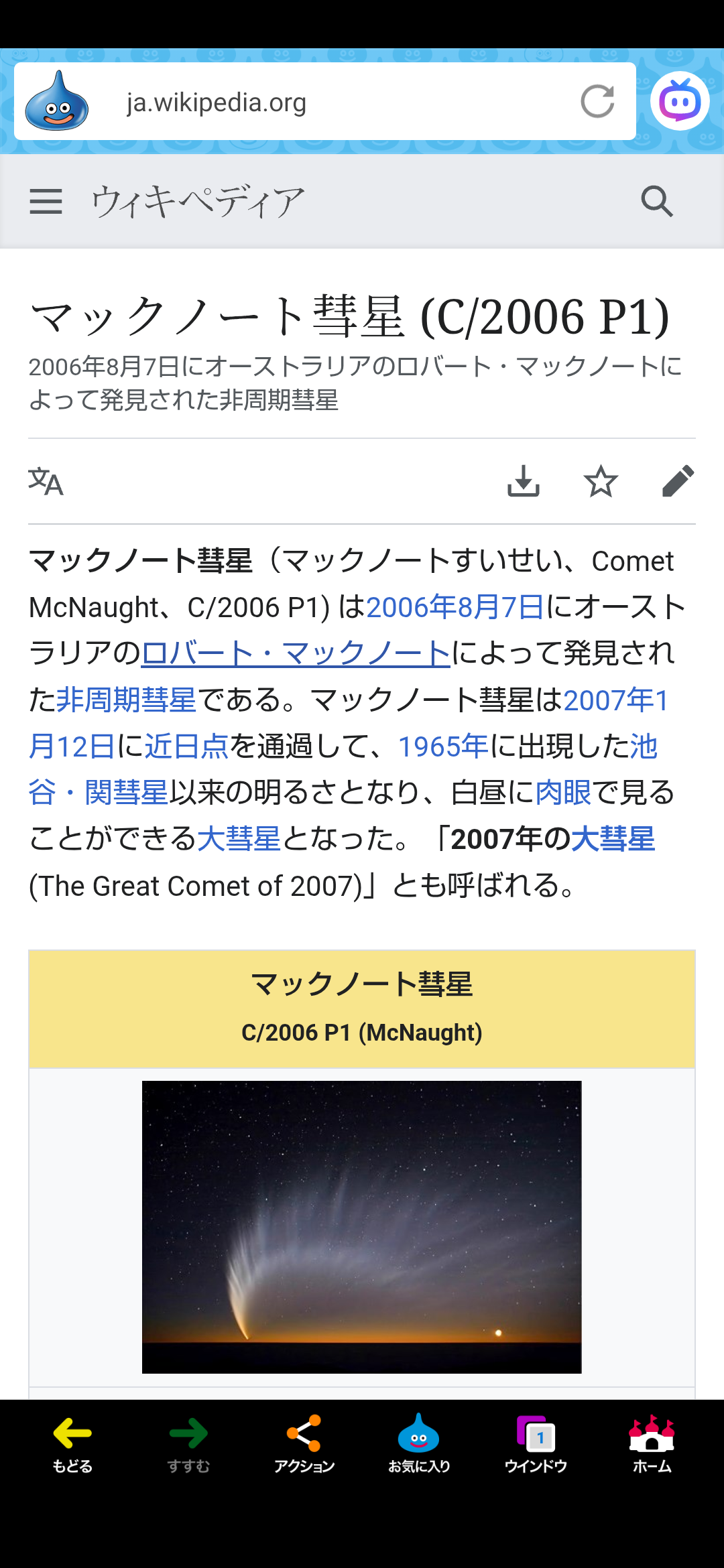 「マックノート彗星が近日点を通過した日」。🎌