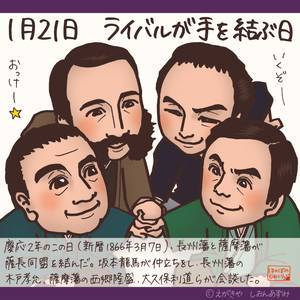 「ライバルが手を結ぶ日(薩長同盟成立の日)」。🎌