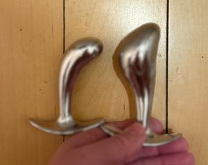 いつもの親指型Mサイズ(左側)より大きい蛇頭型Lサイズ(右側)をぶちこんで