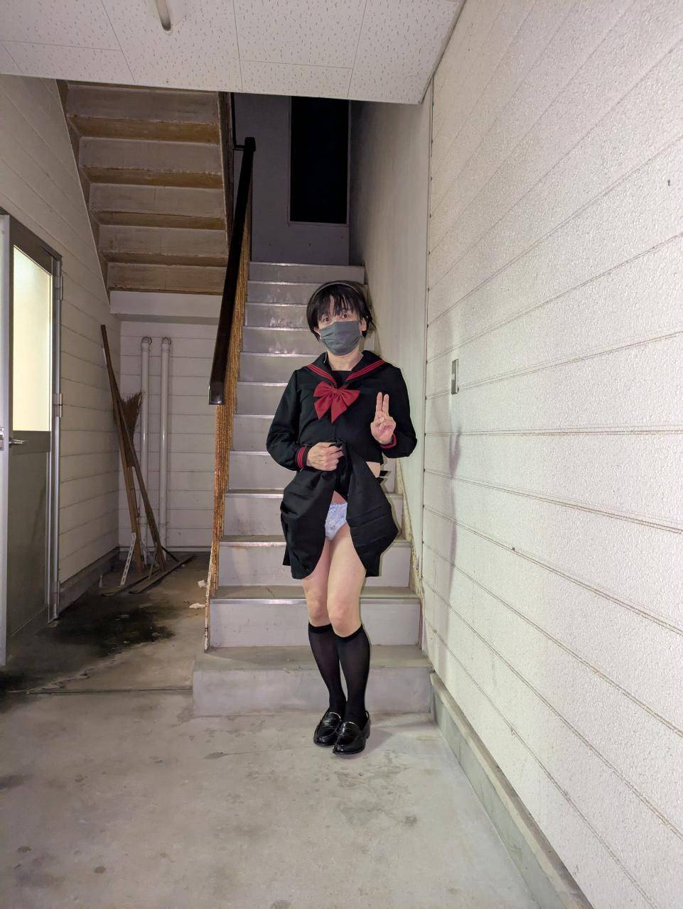 始めて女装して夜の公園に行った時に絡まれた事がトラウマになって😭