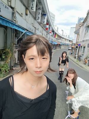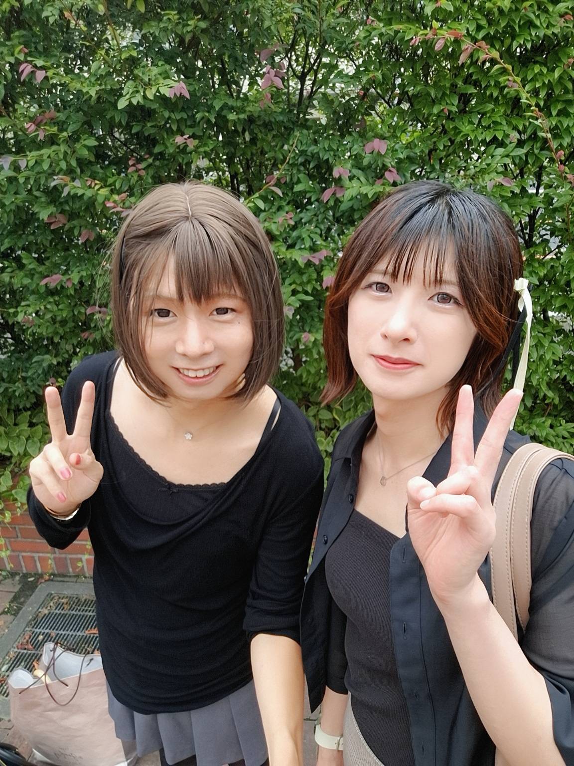外出して女装仲間と会って仲良く写真を撮って