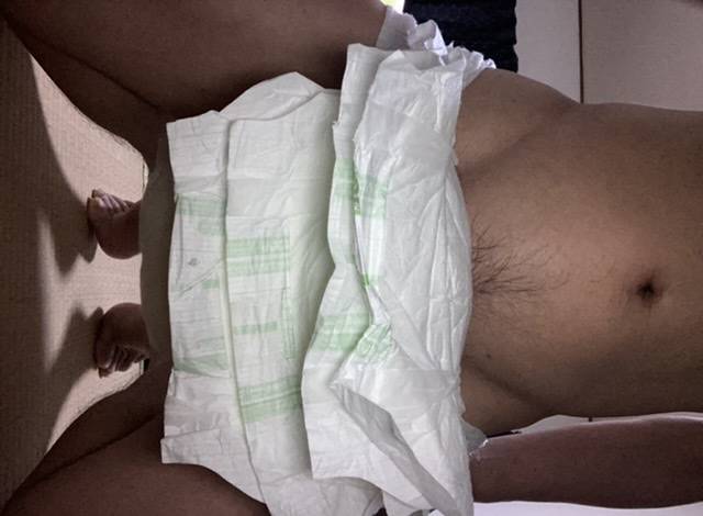 今朝のおむつ!昨日オナニー射精してそのままおむつを履いてます今朝もオナニーしちゃた!熟女おばさんの映像を見ながらオナニー射精