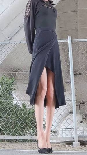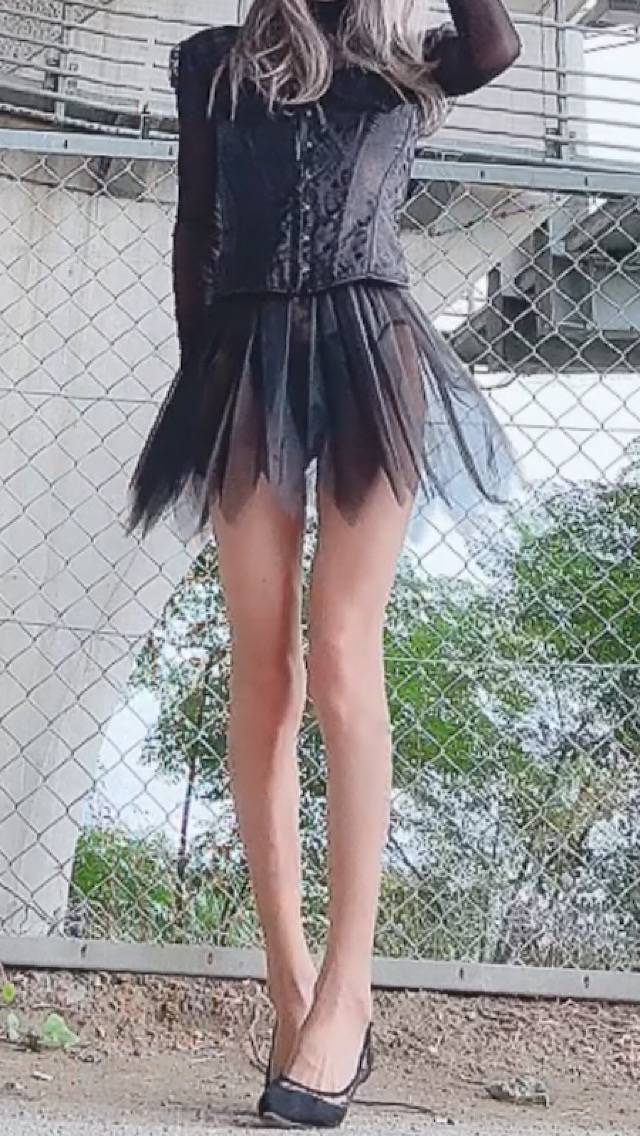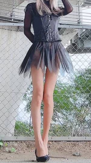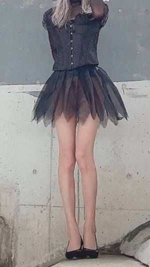 ハロウィン衣装の試し撮りをしてみたけど、ストッキングを網タイツにして、スカートの下に透け感のあるスカートを追加してみようかと思っています(^。^)