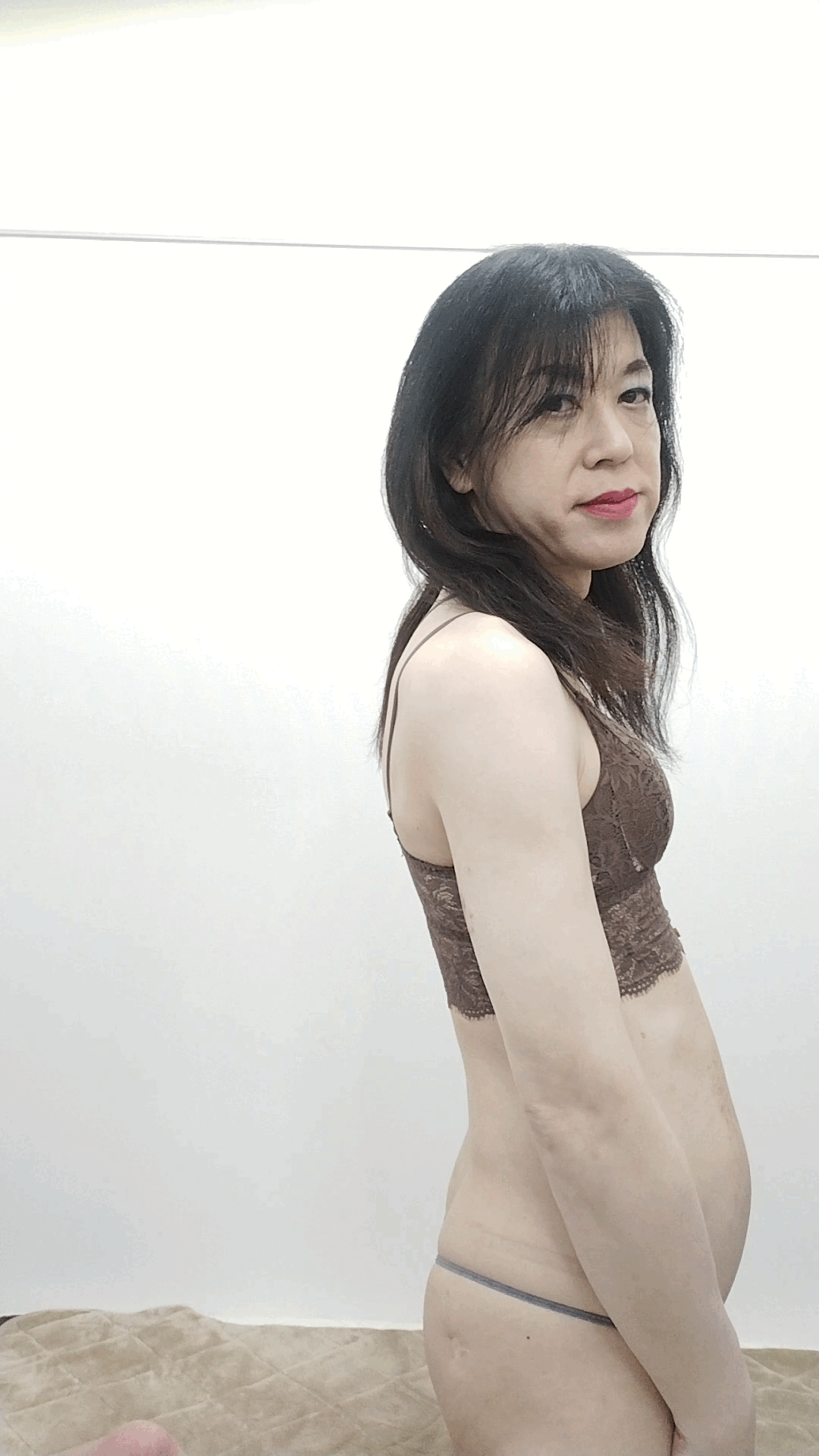 屋足の調子もやっと良くなってきて、サポーター無しで動ける様になりました😅その間何度か下着のみの変身をしてましたが、月曜日のお仕事終わりに我慢出来なくなり、お化粧無しのウィッグ&シリコンバスト着用での首下下着変身で撮影してきました👙