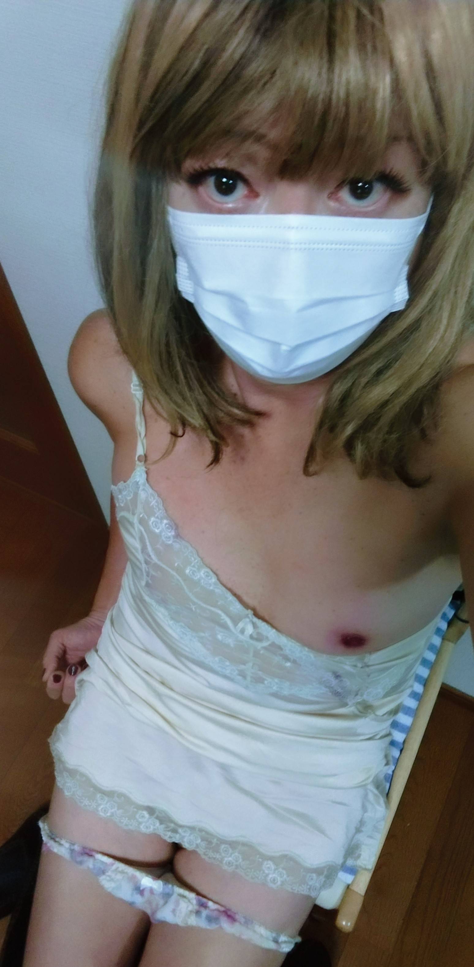 口紅💄がMaskjの内側について困るの🙍ブランド物は勿体ないからナイトリップクリーム塗ってますけどネお洒落は外せないもんウフ♡