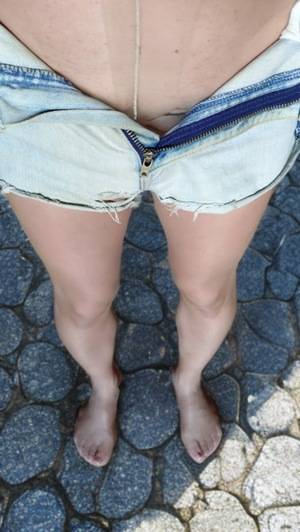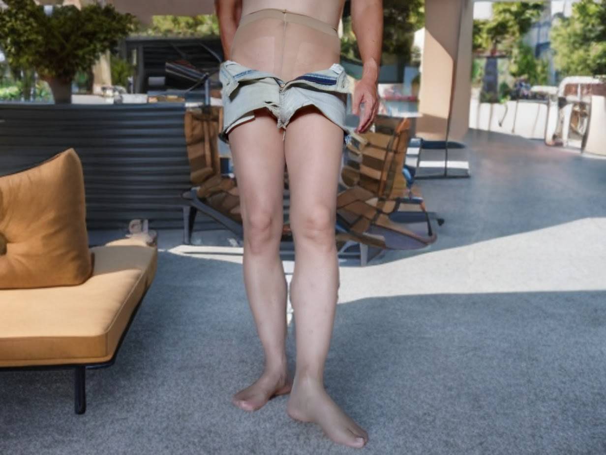 デニムショーパンにベージュパンストで外出とか!