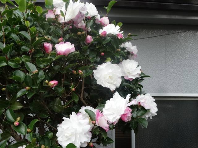 敷地に山茶花の花が咲き始めました^^