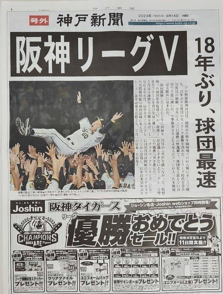 「1984年(平成6年)のこの日、MLBのストライキを受けてワールドシリーズの中止が決定した日」、「2023年(令和5年)のこの日、阪神タイガースが18年ぶりにセ・リーグを制覇した日」。🎌