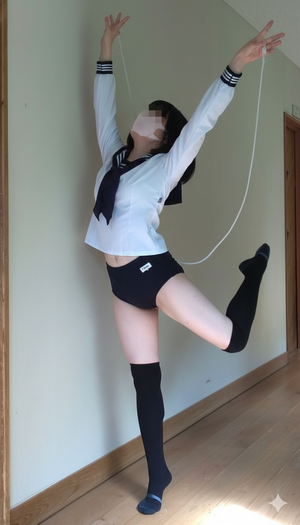 写真はブルマだとクラウチングもしてくれなかったので一度レオタードを着せたらしてくれた、けど、「後からのアングル」は拒否、すごくつまらない🙄