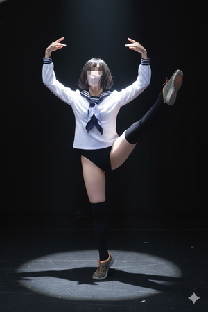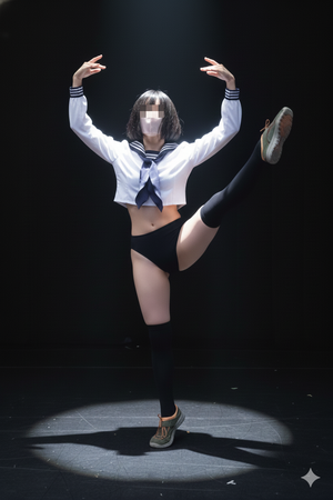 三枚目 立たせたらソックスの長さが違う、これは一枚目で左足のソックスが見えてないからそうなったのでしょうがこんな常識は不勉強のようですね。