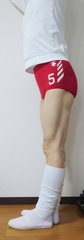 今日は、たまに履く、バレーボール試合用のブルマです。キツメのサイズですので、パツパツ感が有ります。