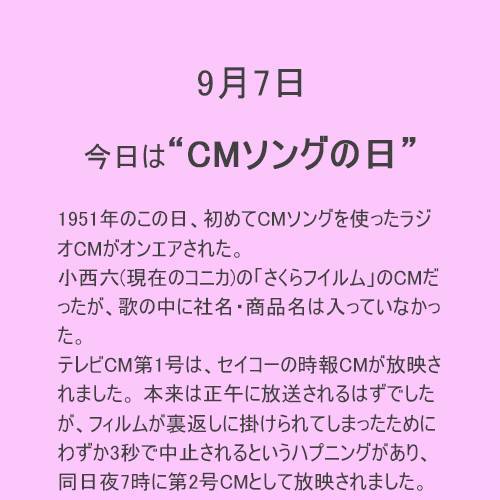 「CMソングの日」、「ブエノスアイレスで開催されたIOC総会で2020年夏季五輪の開催地が東京に決定した日」。🎌