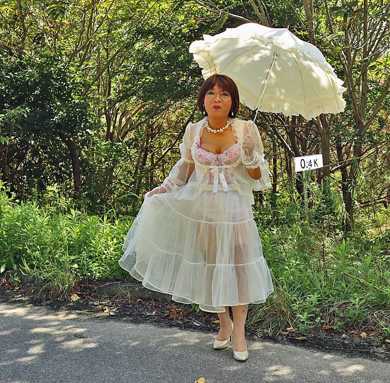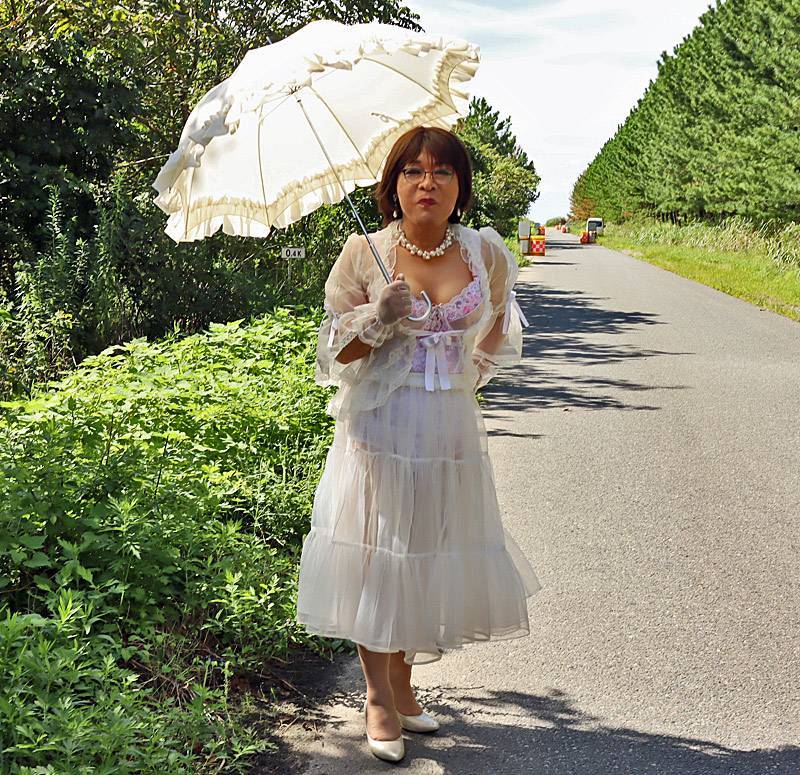 今年の夏はエスカレートして、スリップやコルセット姿、そして下着が丸見えの透け衣装で散歩をして男からジロジロ視姦されたわ。