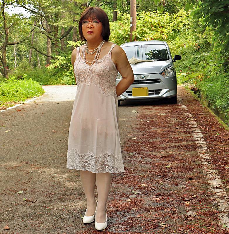 先日は誰も来ないと思ってスリップだけで散歩をしていたら、なんと後ろに車がジロジロみながらついて来たました。
