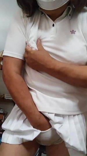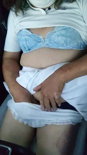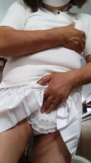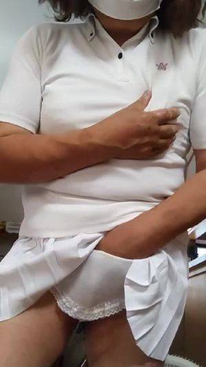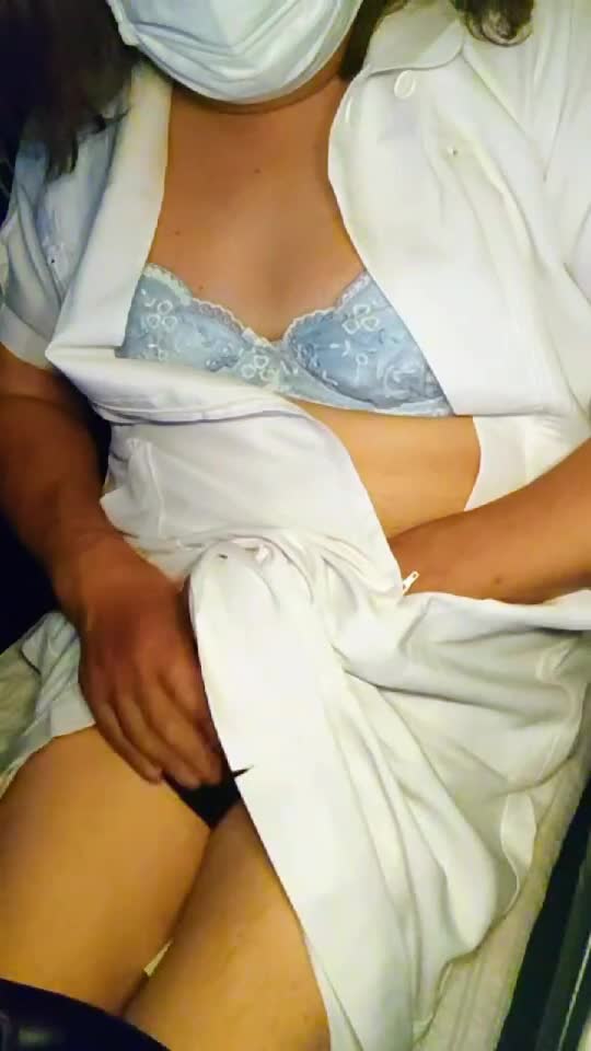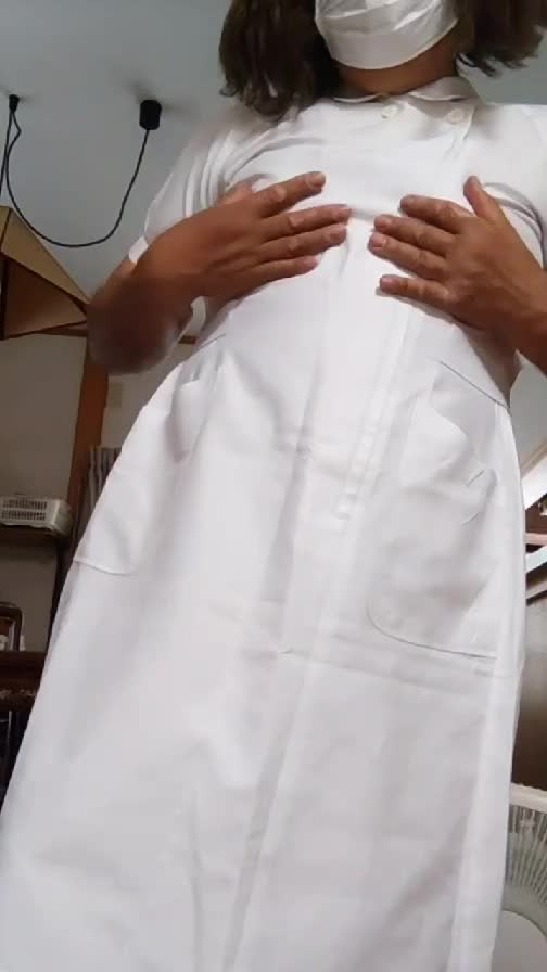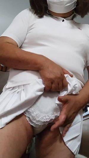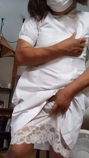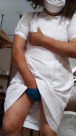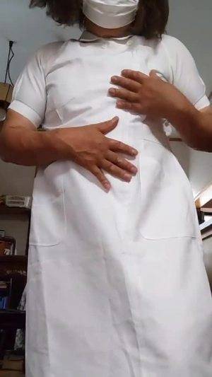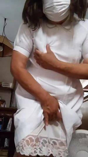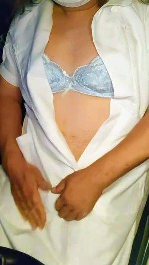 【個撮】ナース服を着た女装が静かにオナニーする動画