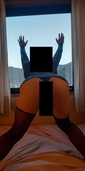 パンティ一枚で、露出撮影です。