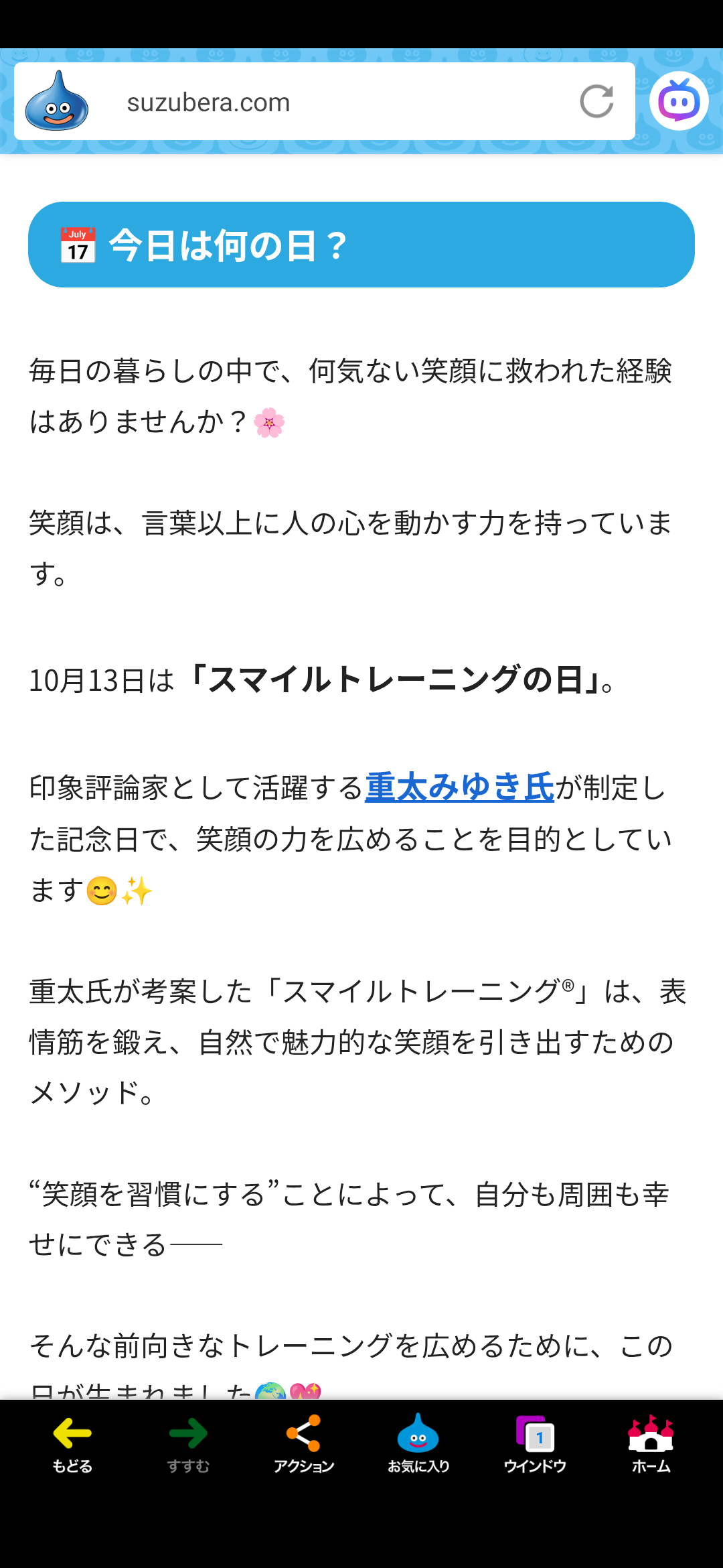 「スマイルトレーニングの日」。🎌