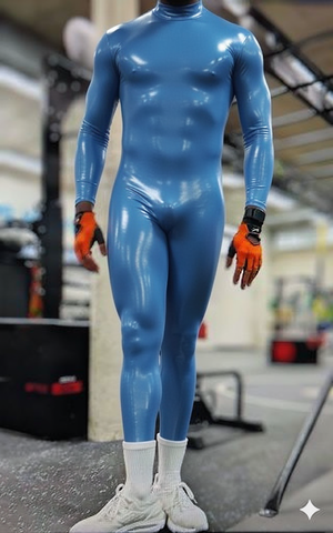 元画像がトレーニングジムでのブルーのコンプレッションインナーのトレーニングウェア…