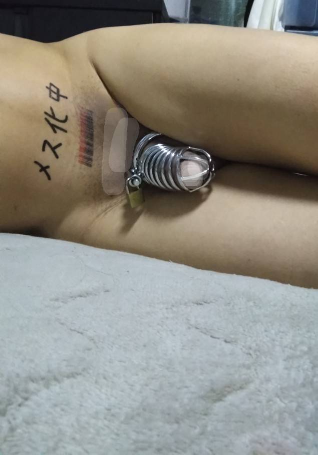 今朝の貞操帯とペニクリです💖 大人しいもんですよ(笑) スッキリした顔してましたからね😱🌀🌀🌀 陰毛部分は、ケア出来てなくて、黒く汚いので、少しモザイク掛けさせて頂きました! すいません🙇🙇🙇